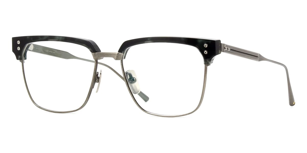 This square Dita optical comes in a phantom cloud and brushed antique silver frame.
