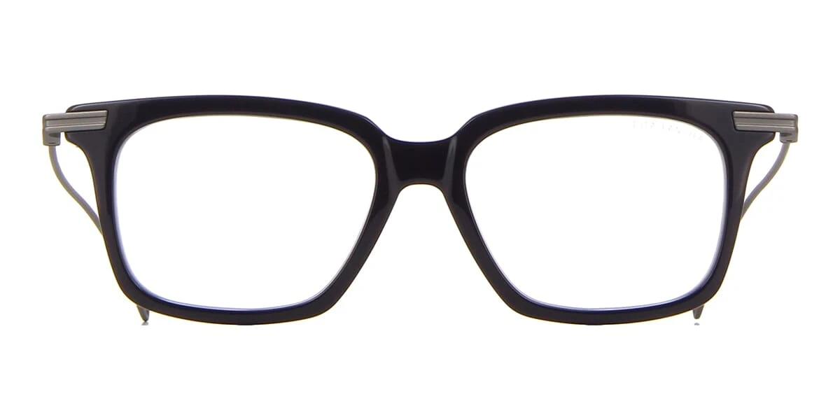 This square Dita Lancier optical comes in a dark navy and gunmetal frame.