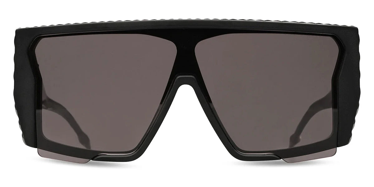 This shield Dita sunglass comes in a black with black palladium frame with grey lenses.