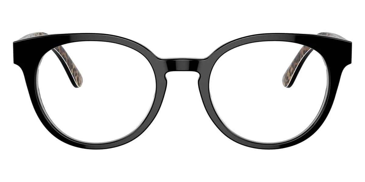 This round Dolce&Gabbana optical comes in a black on leo brown frame.