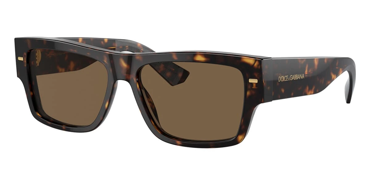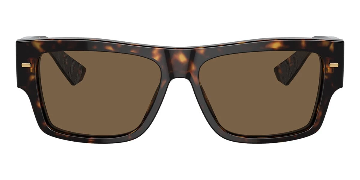 This rectangular Dolce&Gabbana sunglass comes in a havana frame with dark brown lenses.