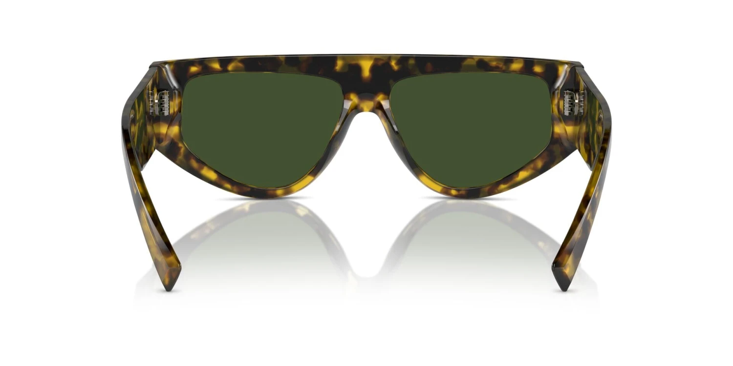 This aviator Dolce&Gabbana sunglass comes in a yellow havana frame with dark green lenses.