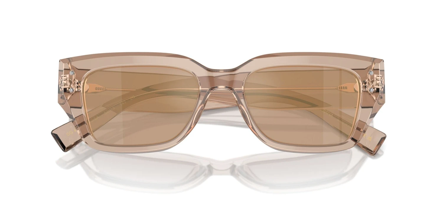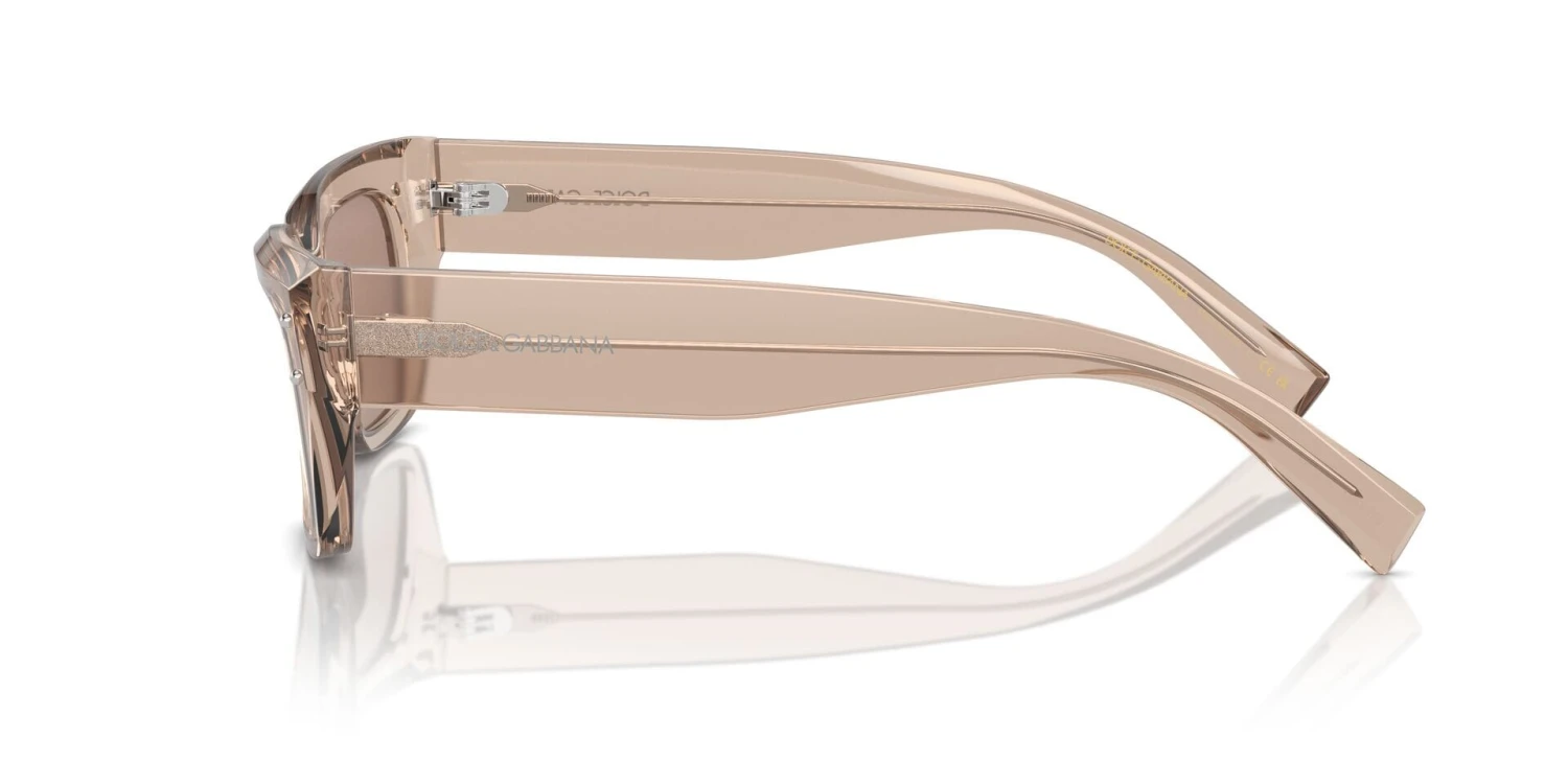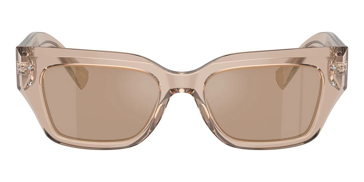This cat eye Dolce&Gabbana sunglass comes in a crystal camel frame with light brown with gold flash mirror lenses.