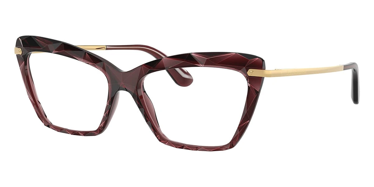 This cat eye Dolce&Gabbana optical comes in a bordeaux crystal frame.