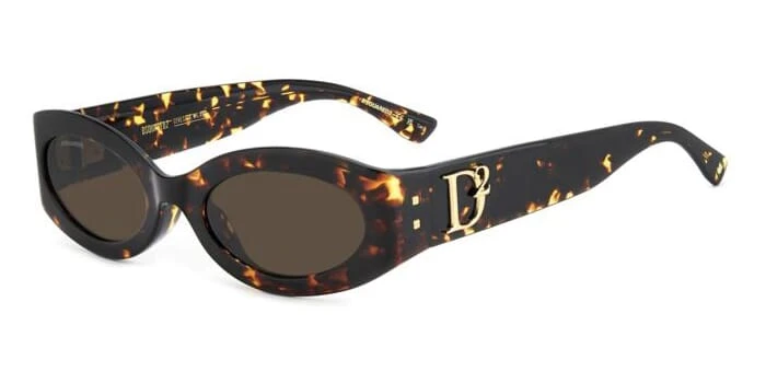 This square Dsquared2 sunglass comes in a havana with gold frame with brown lenses.