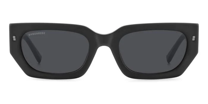 This square Dsquared2 sunglass comes in a matte black frame with grey lenses.