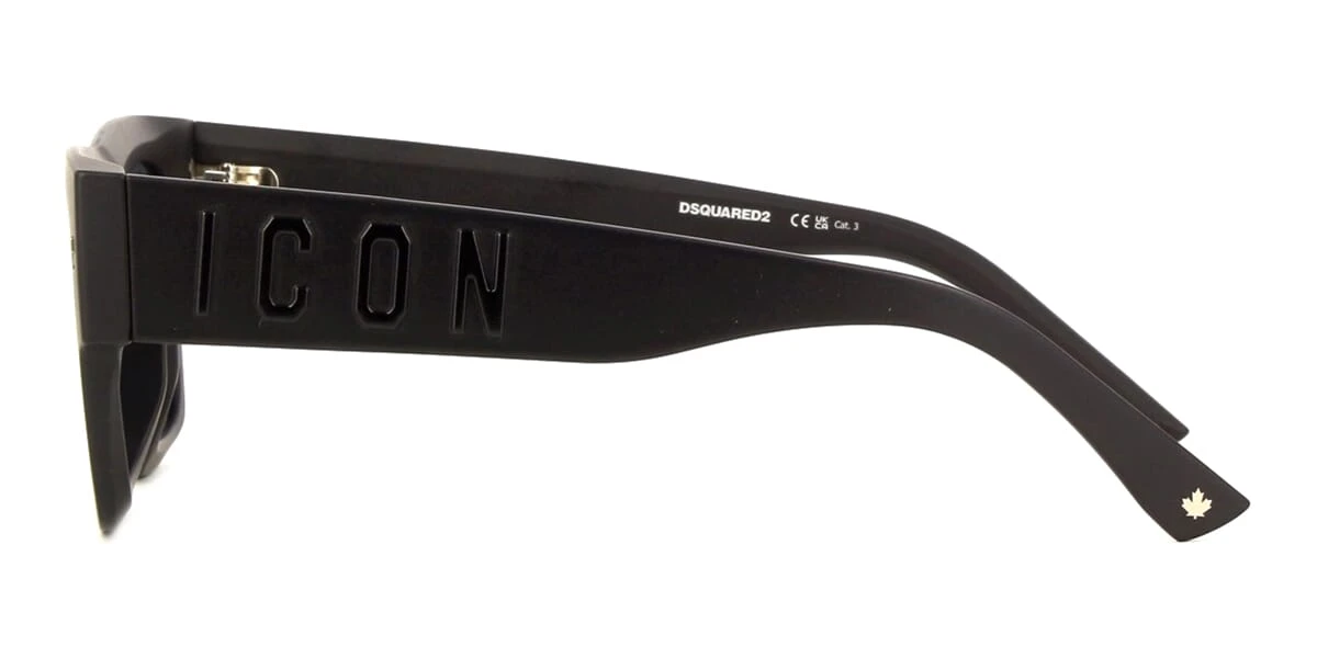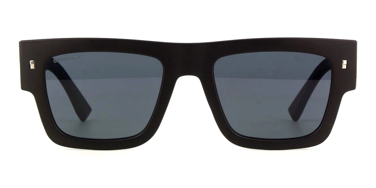 This square Dsquared2 sunglass comes in a matte black frame with grey lenses.