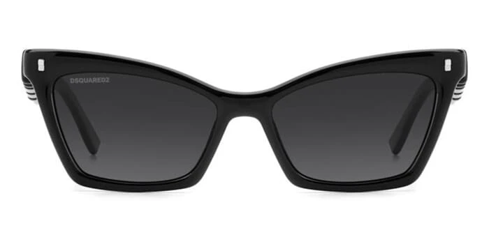 This cat eye Dsquared2 sunglass comes in a black frame with dark grey gradient lenses.
