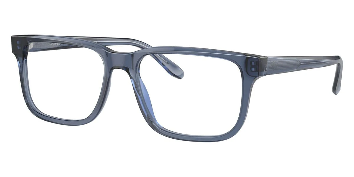 This rectangular Emporio Armani optical comes in a shiny blue crystal frame.