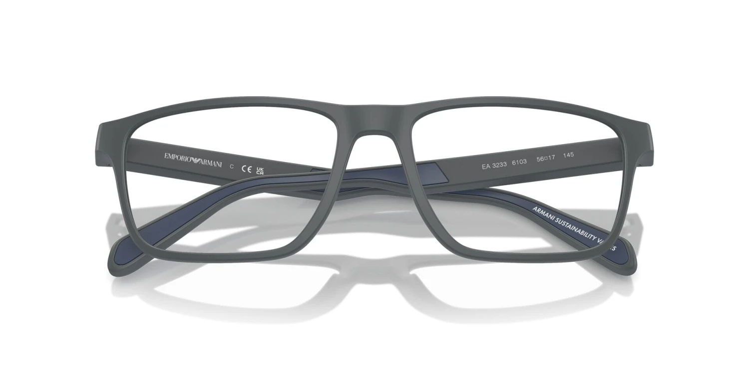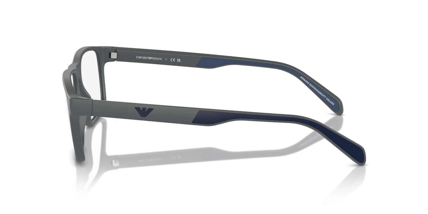 This rectangular Emporio Armani optical comes in a matte dark grey frame.