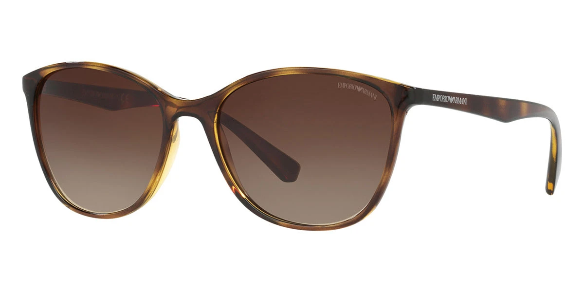 This cat eye Emporio Armani sunglass comes in a havana frame with brown gradient lenses.