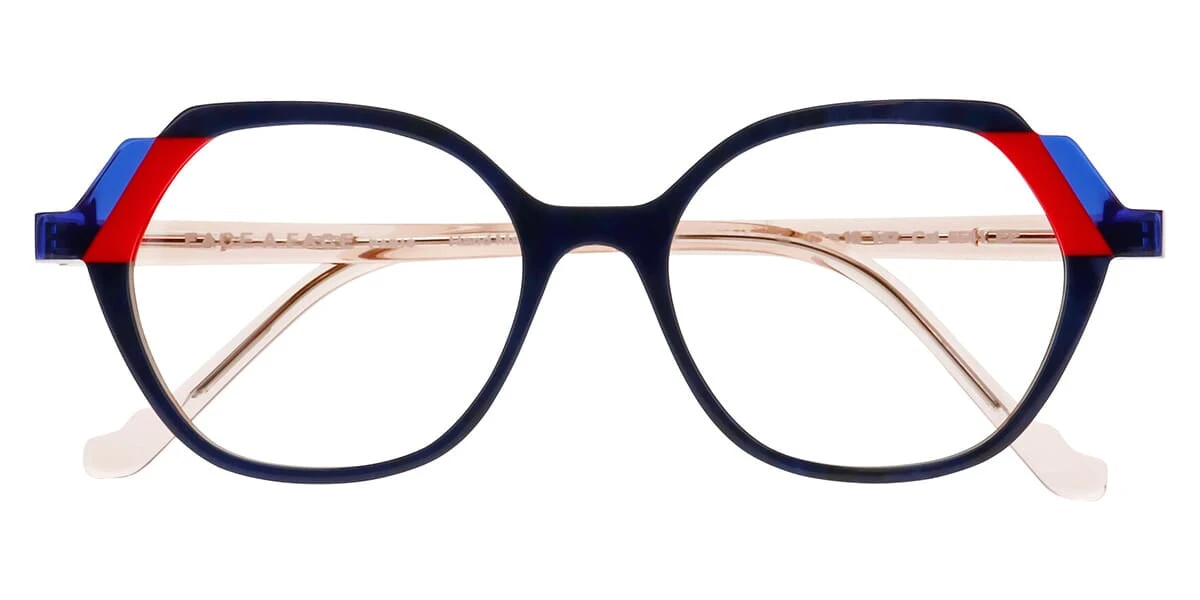 This cat eye Face A Face optical comes in a blue marble frame. Fun and ready to get moving is the Moves 1! The endpiece shifted outward gives this design its full dynamism with zig-zagging geometric lines revealing a pattern that is as playful as it is sophisticated. Make room for mischievous mismatches with this chromatic construction set!