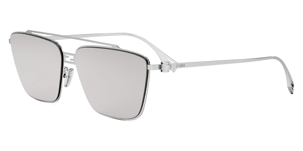 This aviator Fendi sunglass comes in a shiny palladium frame with grey with silver mirror lenses.