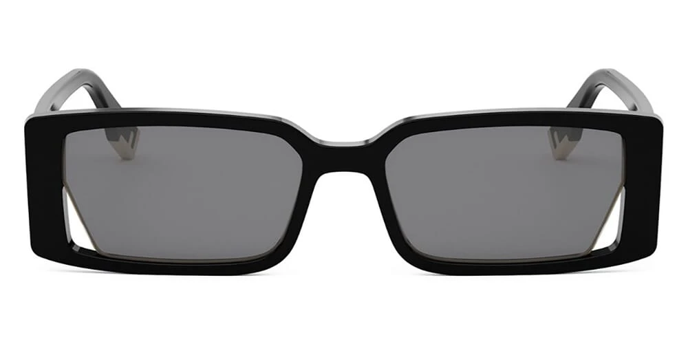 This square Fendi sunglass comes in a shiny black frame with grey lenses.