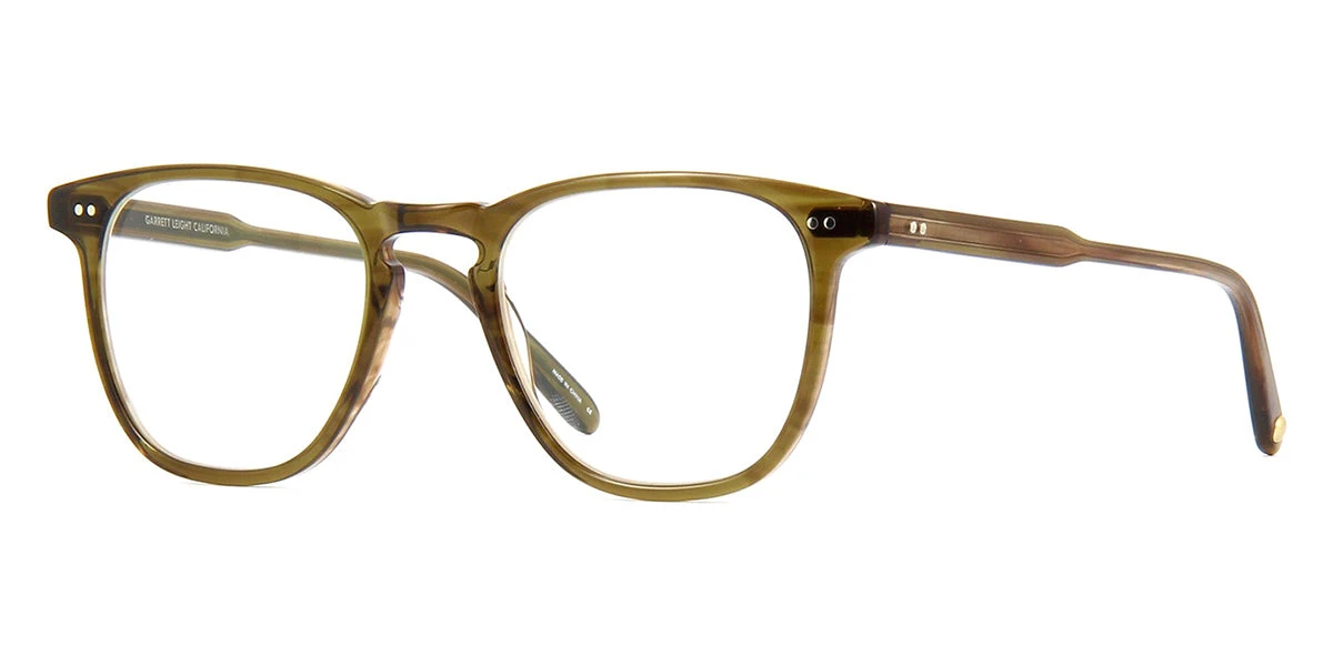 This square Garrett Leight optical comes in a olive tortoise frame.