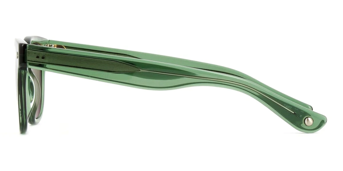 This square Garrett Leight sunglass comes in a juniper frame with pure green lenses.
