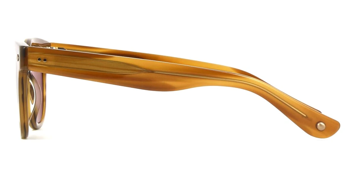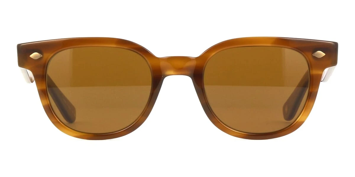 This square Garrett Leight sunglass comes in a saddle tortoise frame with pure coffee lenses.