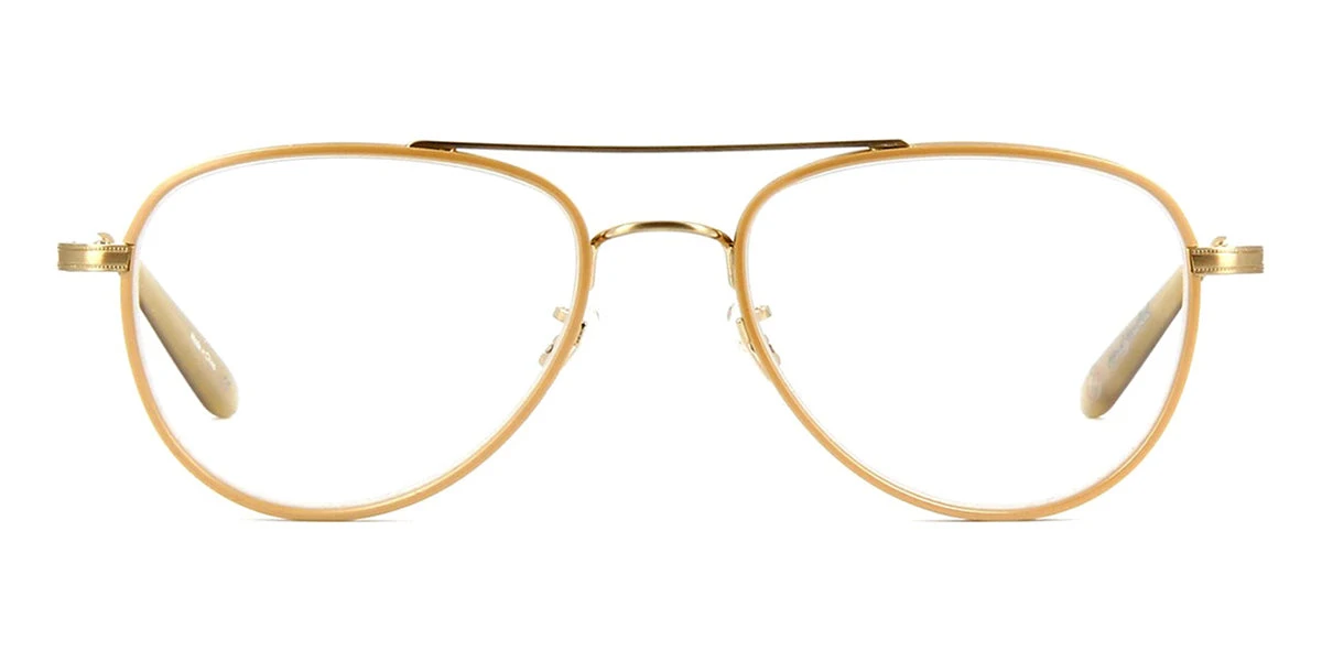 This aviator Garrett Leight optical comes in a pearl beige and matte gold frame.