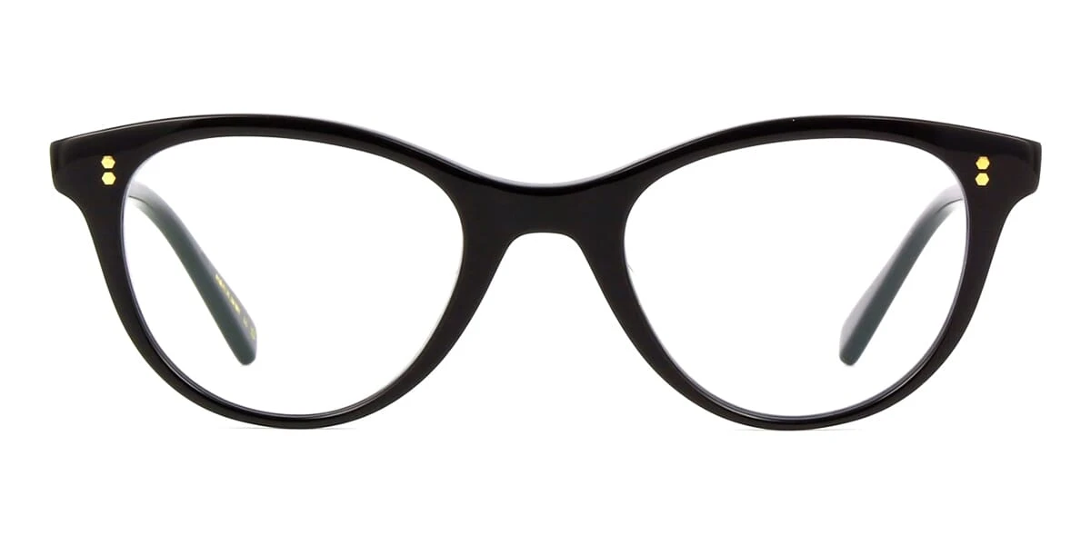This cat eye Garrett Leight optical comes in a black and 12k white gold frame.
