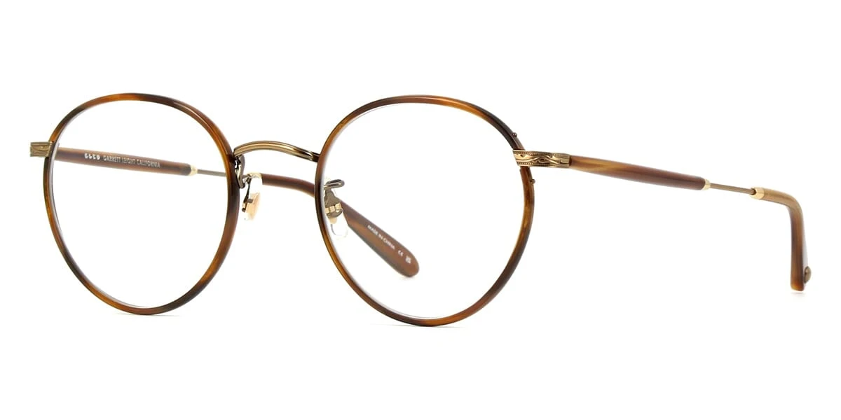 This round Garrett Leight optical comes in a demi blonde brushed gold with true demi frame.