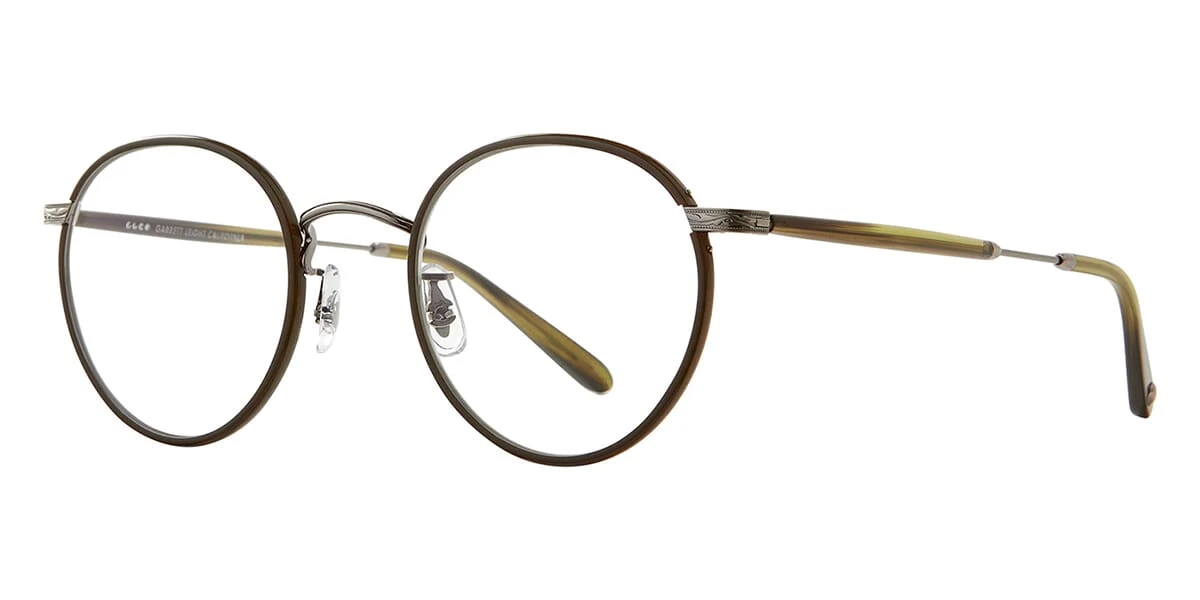 This square Garrett Leight optical comes in a olive with pewter frame.