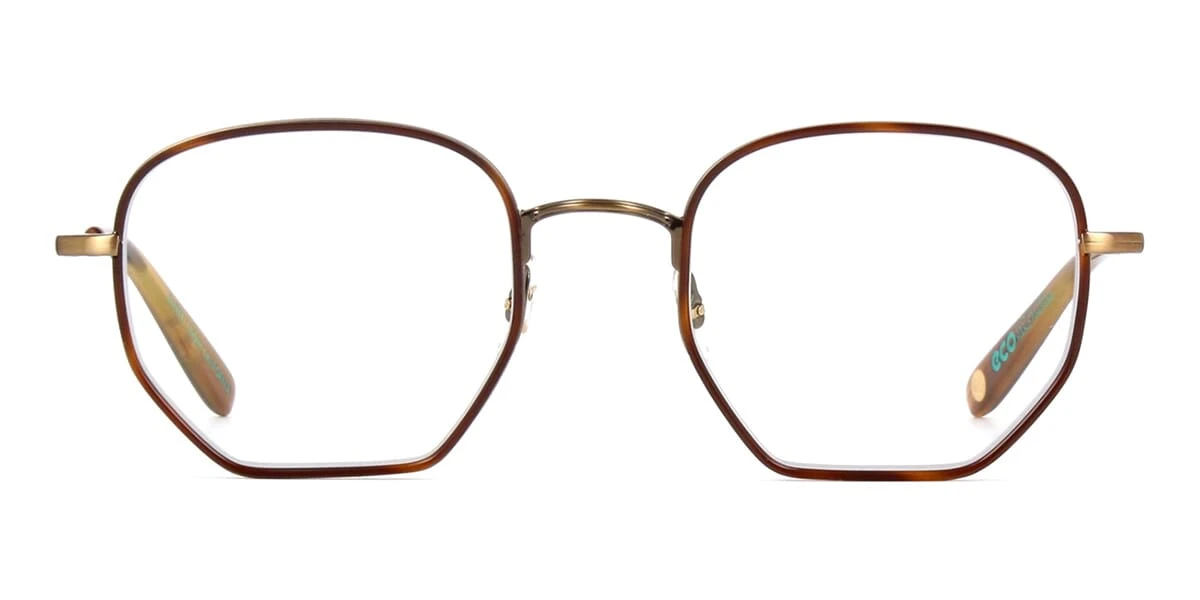 This square Garrett Leight optical comes in a eco marigold tortoise with brushed gold and blonde tortoise frame.