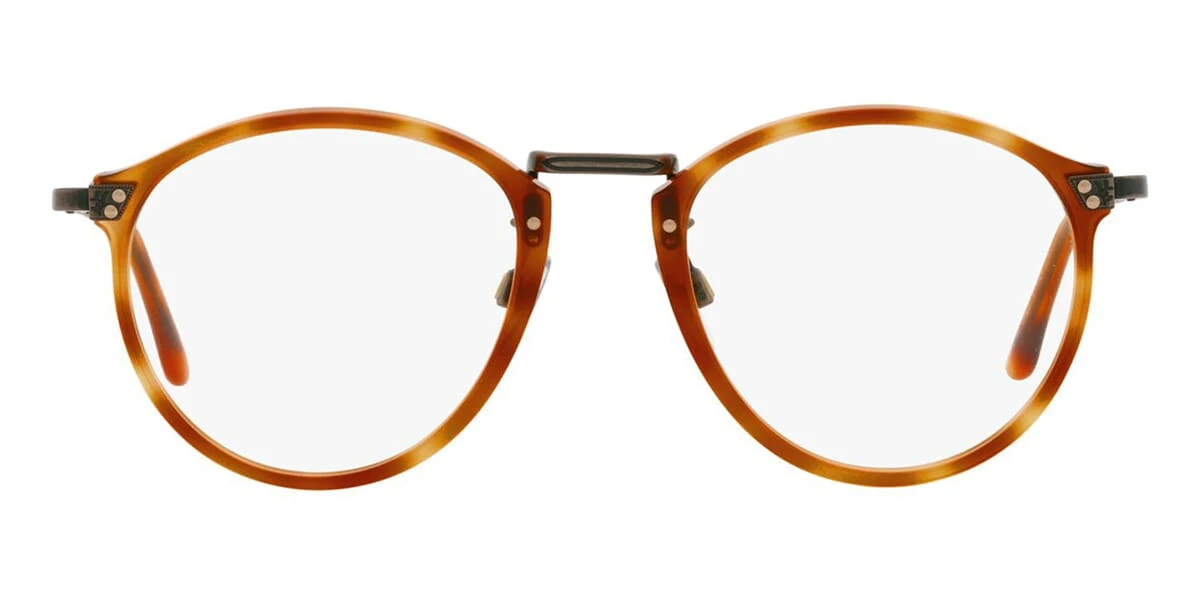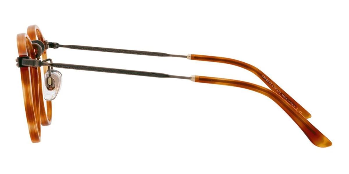 This round Giorgio Armani optical comes in a brown tortoise frame.