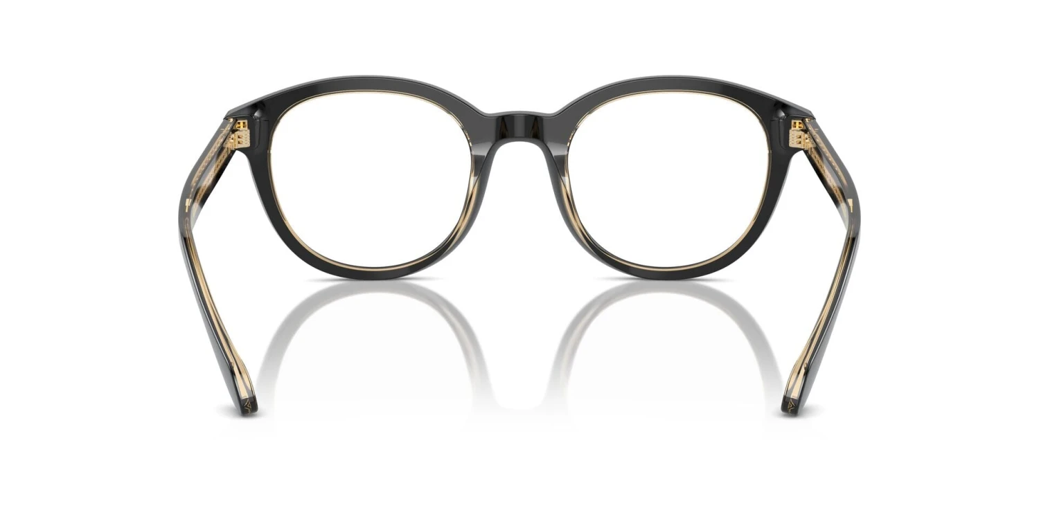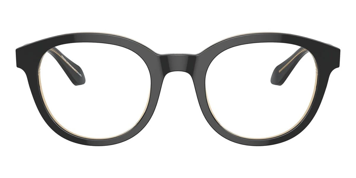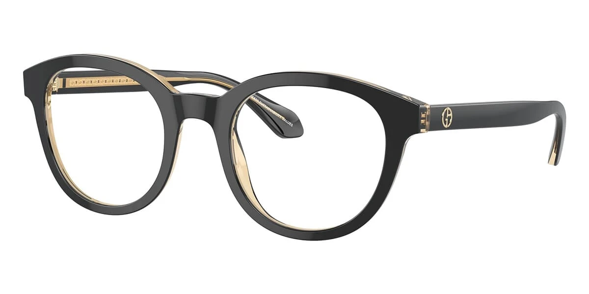 This round Giorgio Armani optical comes in a black on orange crystal frame.