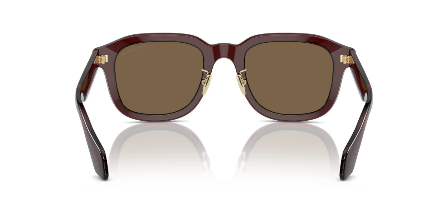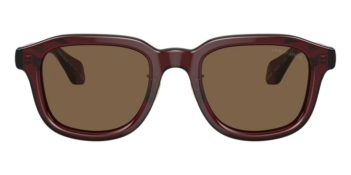 This square Giorgio Armani sunglass comes in a brown crystal frame with dark brown lenses.