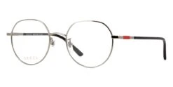 This round Gucci optical comes in a shiny ruthenium with black frame.