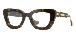 This cat eye Gucci optical comes in a shiny dark havana frame.