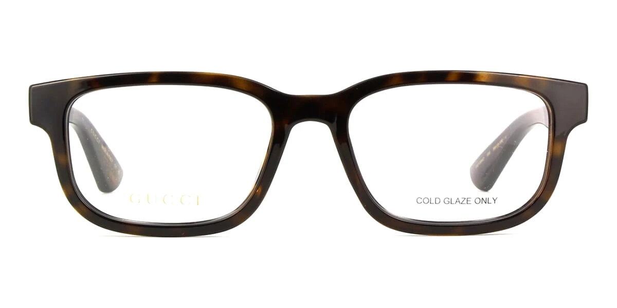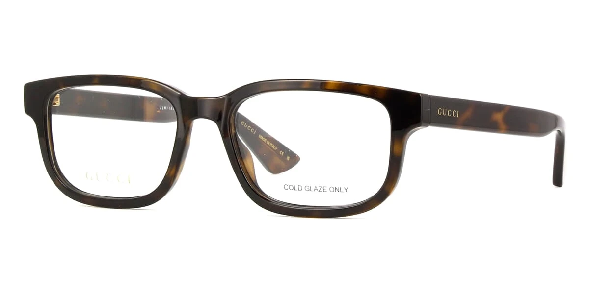 This square Gucci optical comes in a shiny dark spotted havana frame.