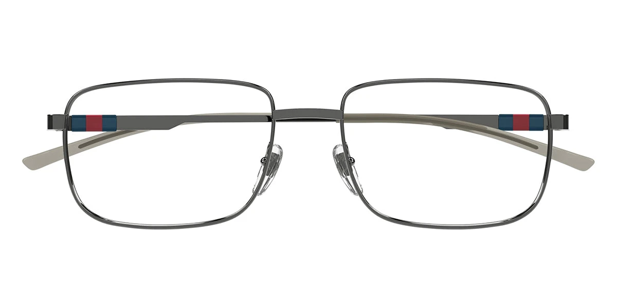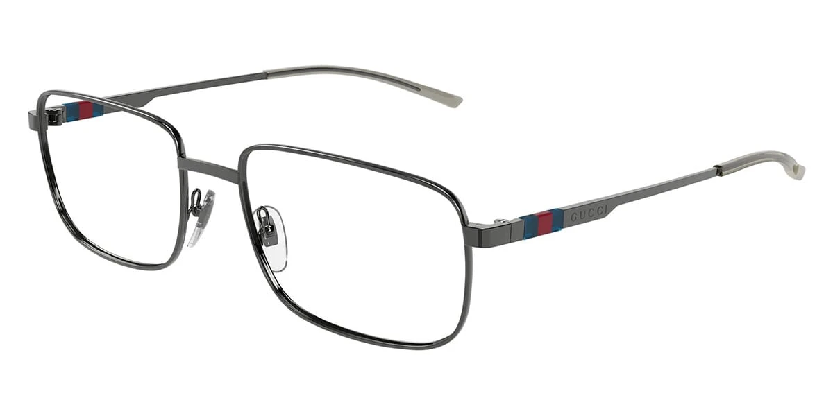 This square Gucci optical comes in a ruthenium frame.