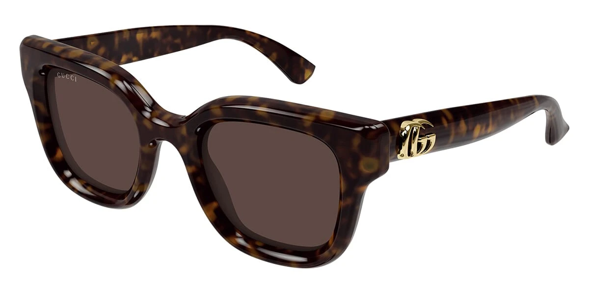 This square Gucci sunglass comes in a shiny dark havana frame with brown lenses.