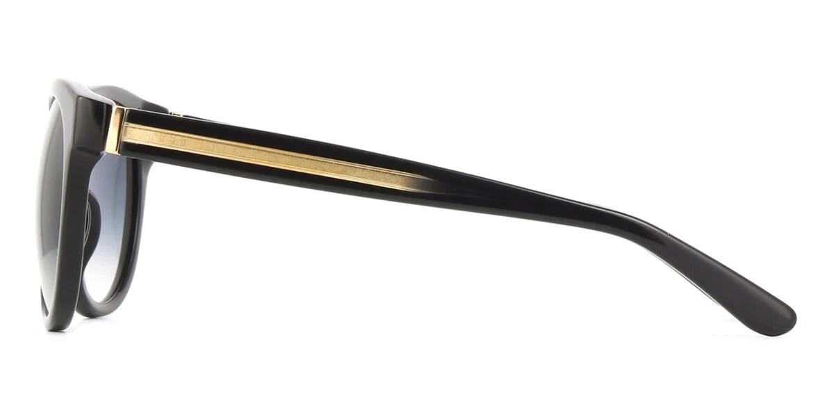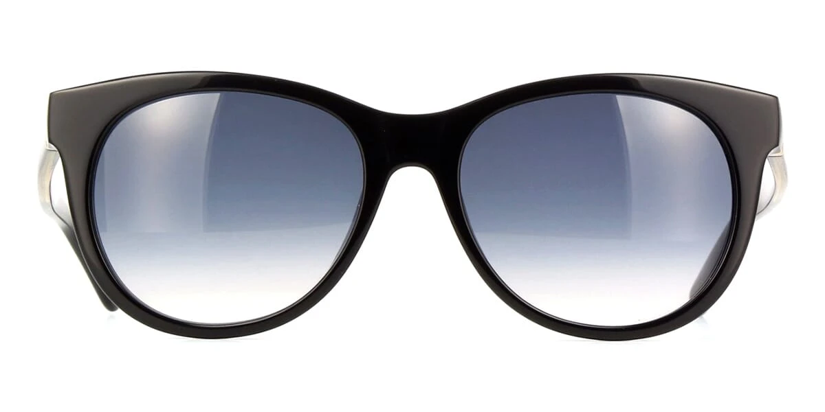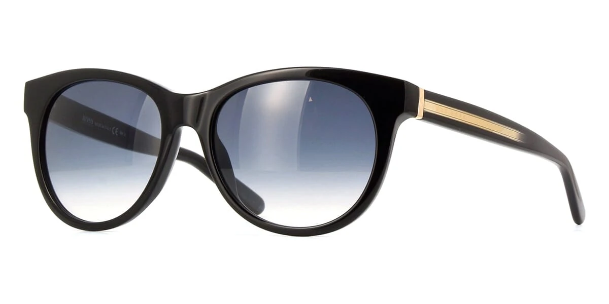 This round Hugo Boss sunglass comes in a shiny black frame with grey gradient lenses.