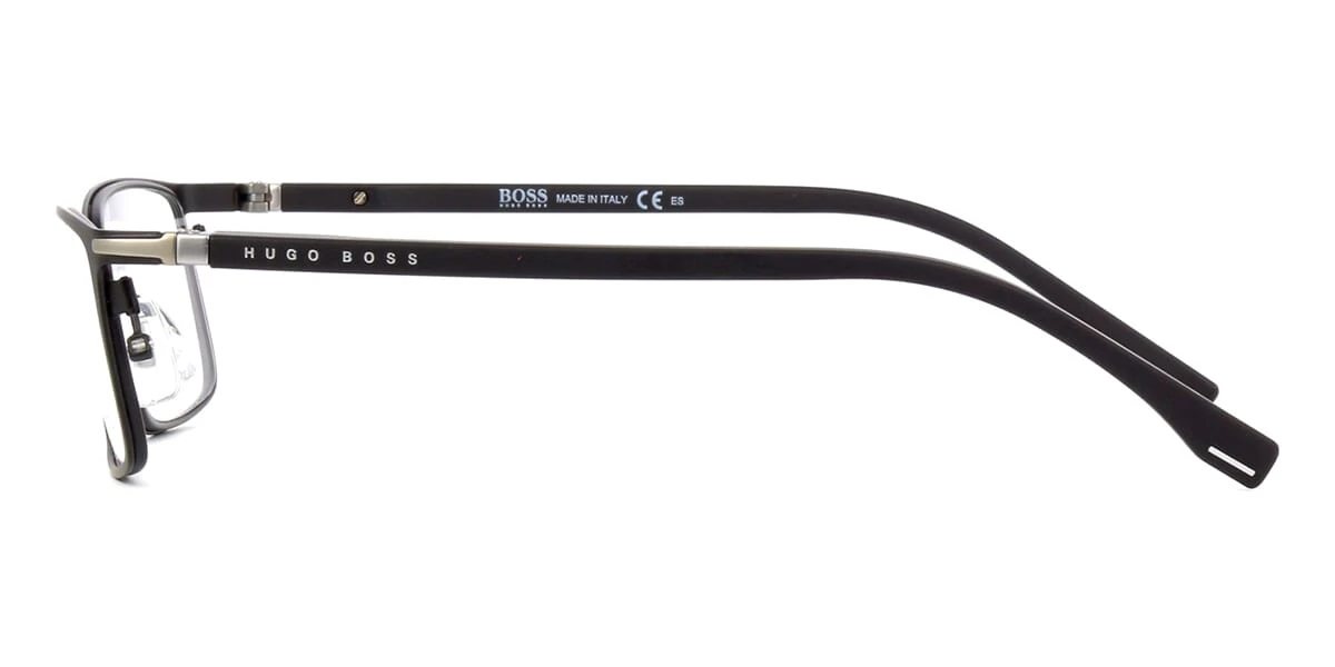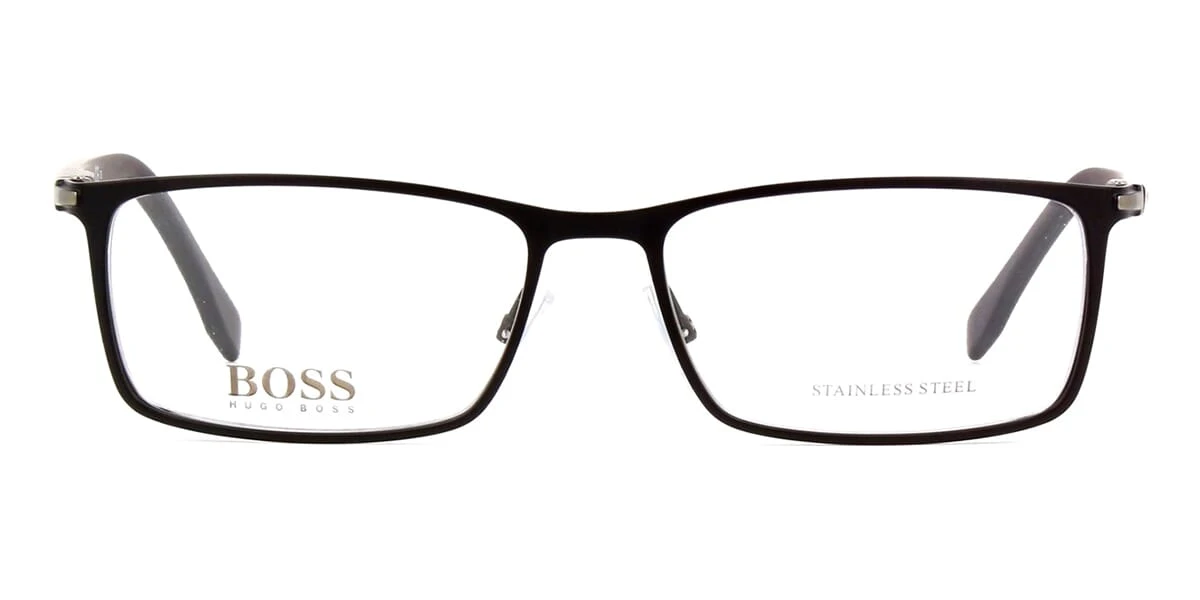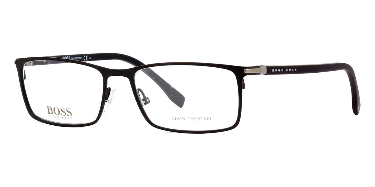 This rectangular Hugo Boss optical comes in a matte black frame.