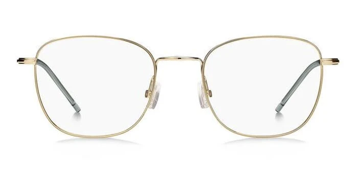 This square Hugo Boss optical comes in a gold and green frame.