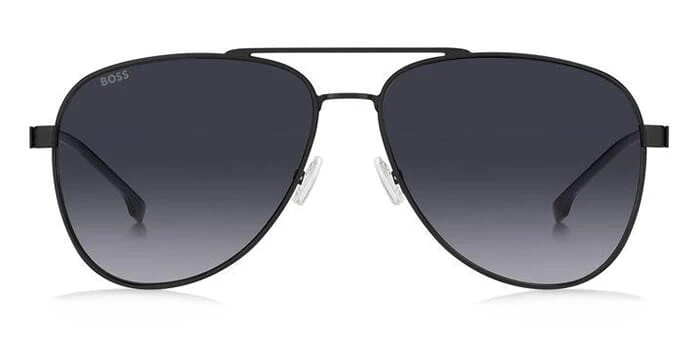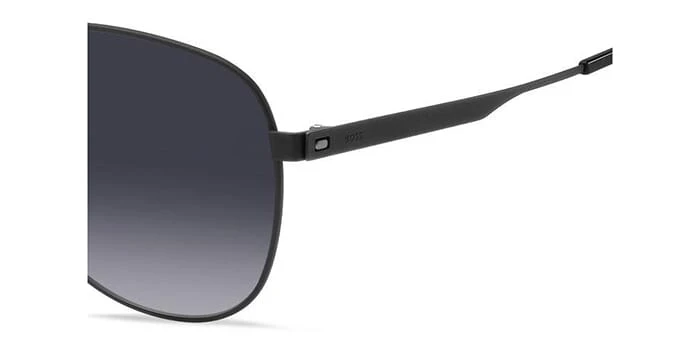 This aviator Hugo Boss sunglass comes in a matte black frame with grey gradient lenses.