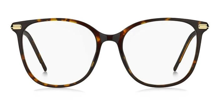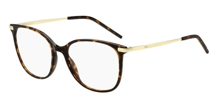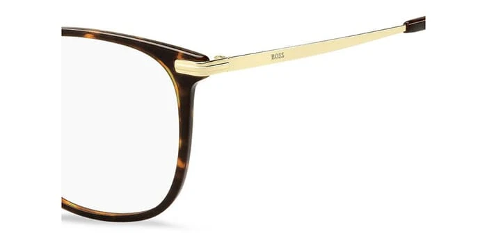 This square Hugo Boss optical comes in a dark havana with gold frame.