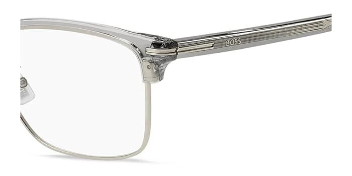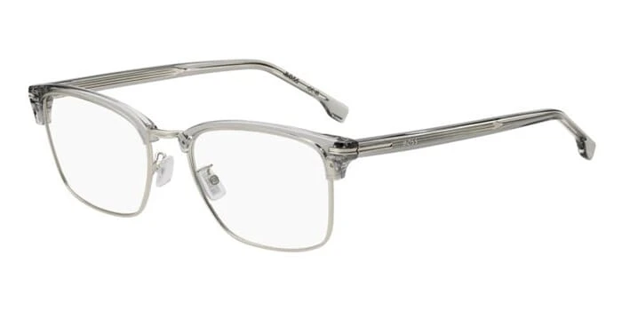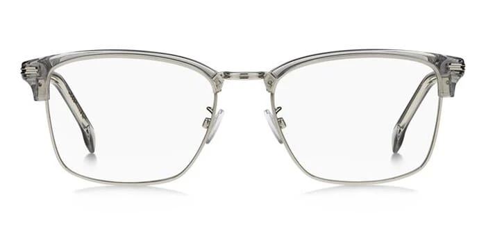 This square Hugo Boss optical comes in a crystal grey with silver frame.