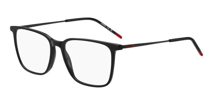 This square Hugo Boss optical comes in a black with red frame.