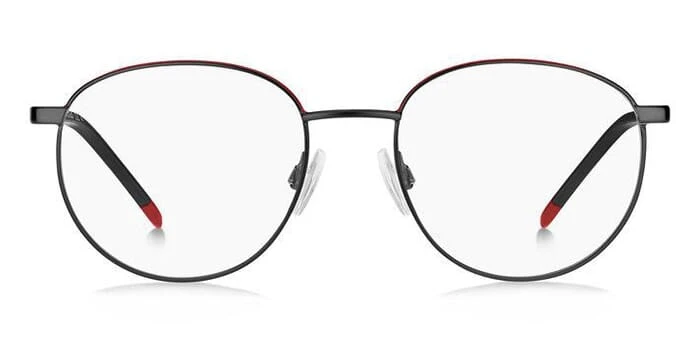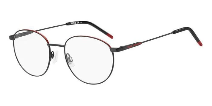 This aviator Hugo Boss optical comes in a matte black and red frame.