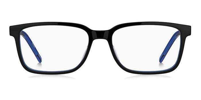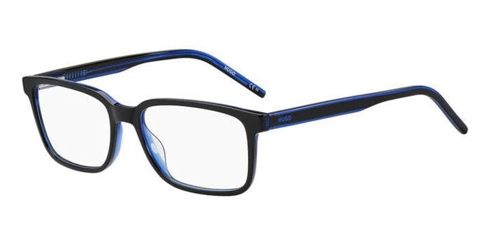 This rectangular Hugo Boss optical comes in a black and blue frame.