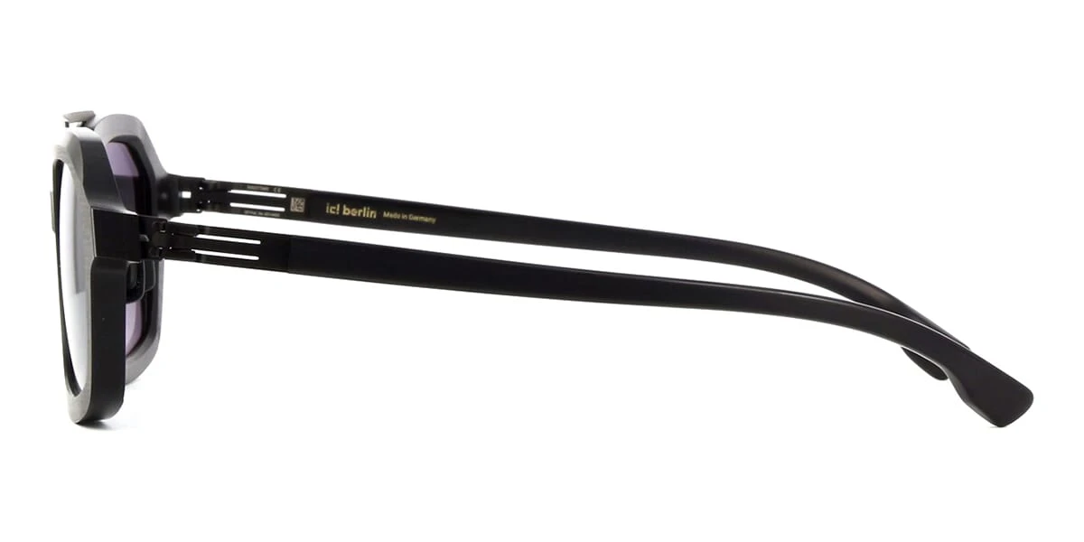 This square ic! berlin sunglass comes in a matte black frame with grey gradient with light mirror lenses.