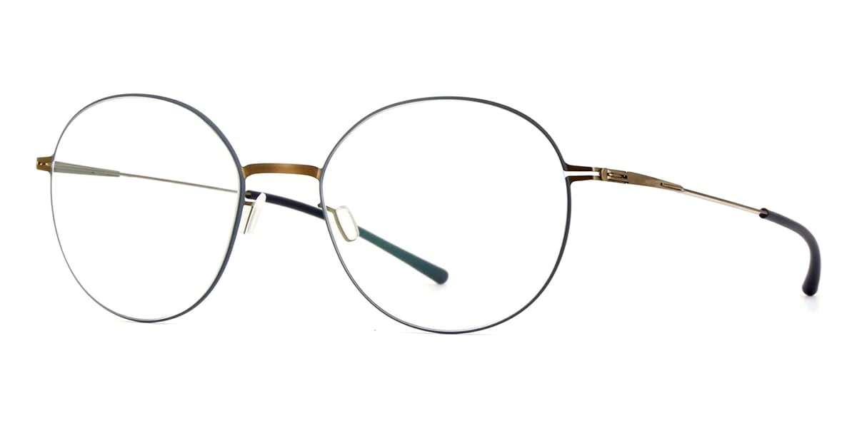 This round ic! berlin optical comes in a bronze taubenblau with marine blue frame.