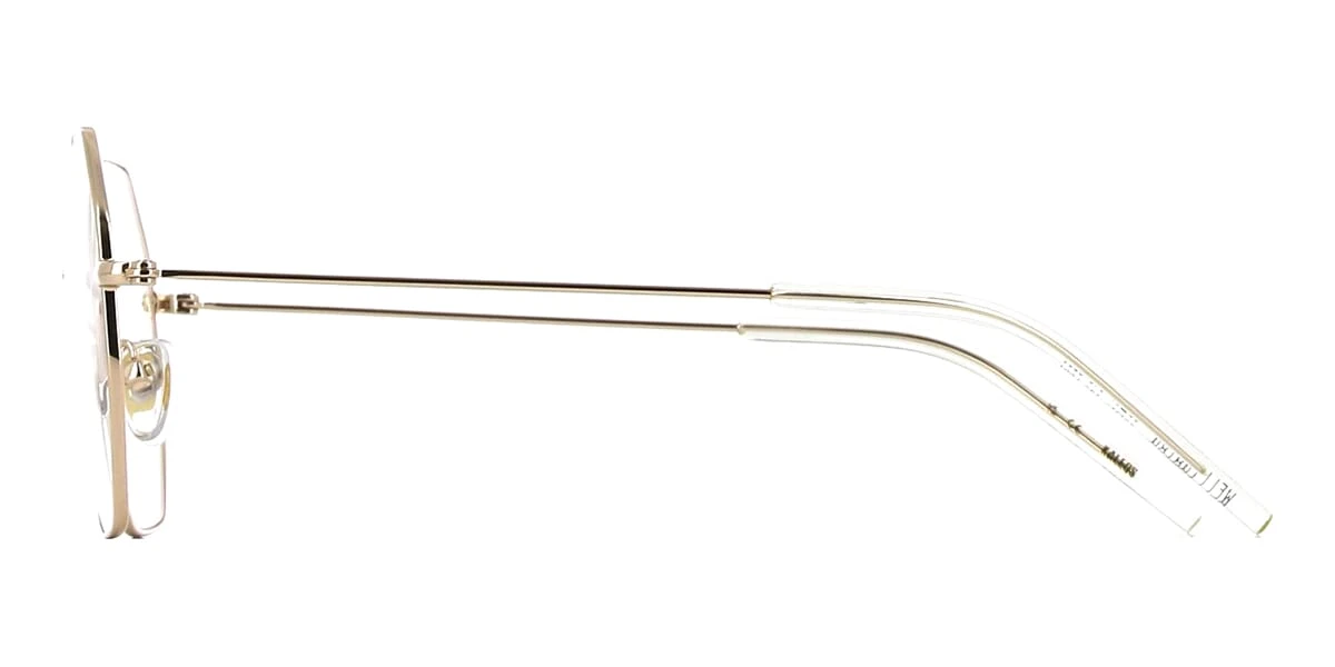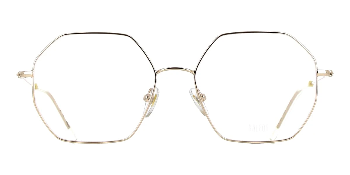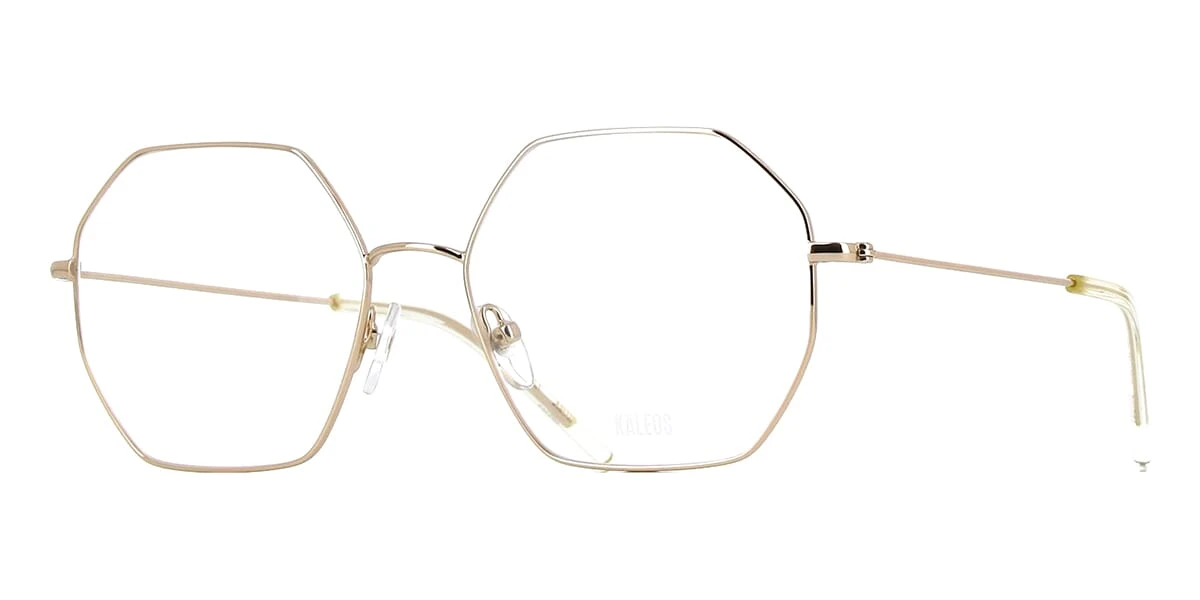This square Kaleos optical comes in a shiny gold frame.
