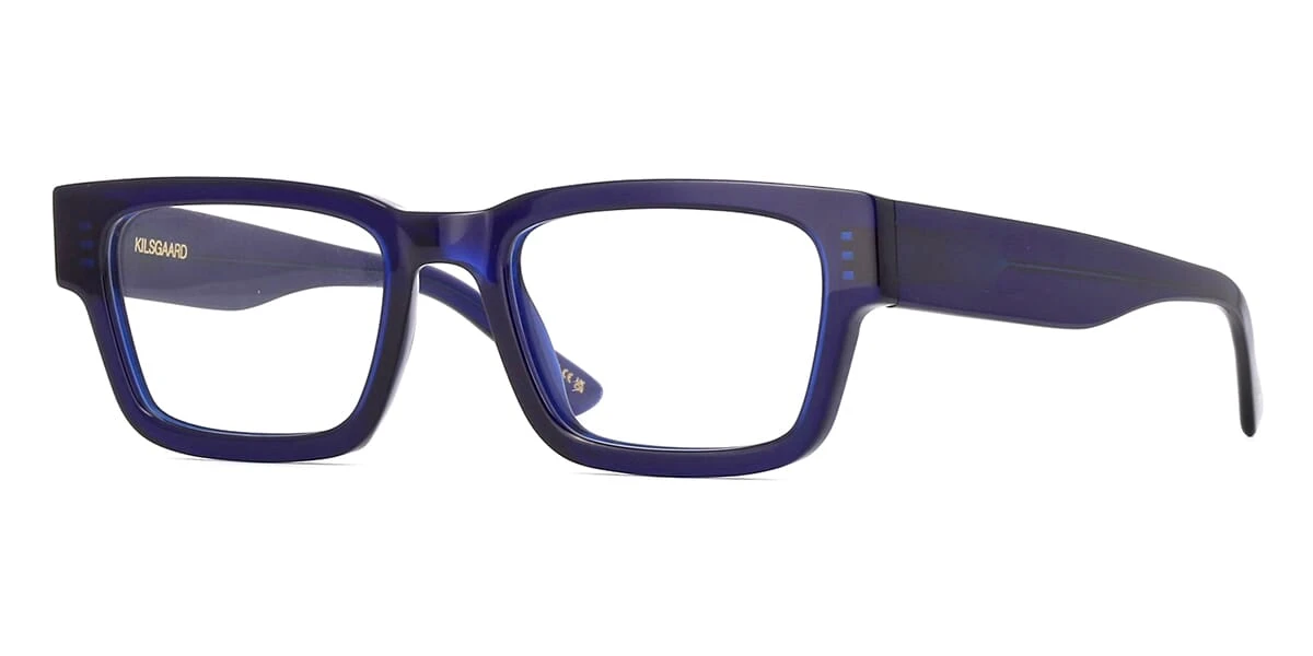 This square Kilsgaard optical comes in a navy dark crystal frame.