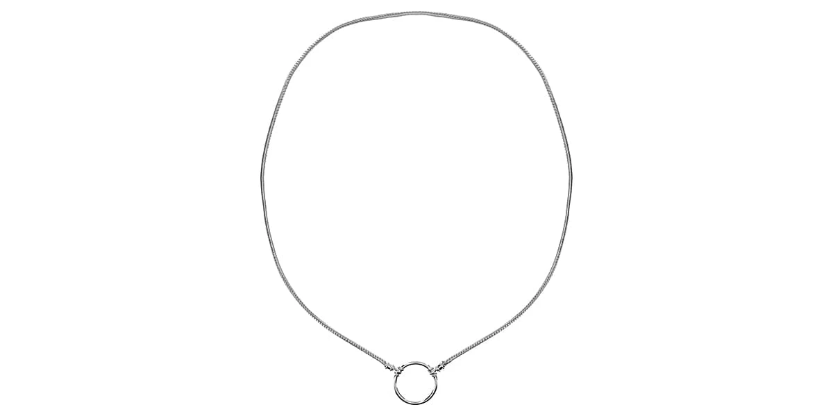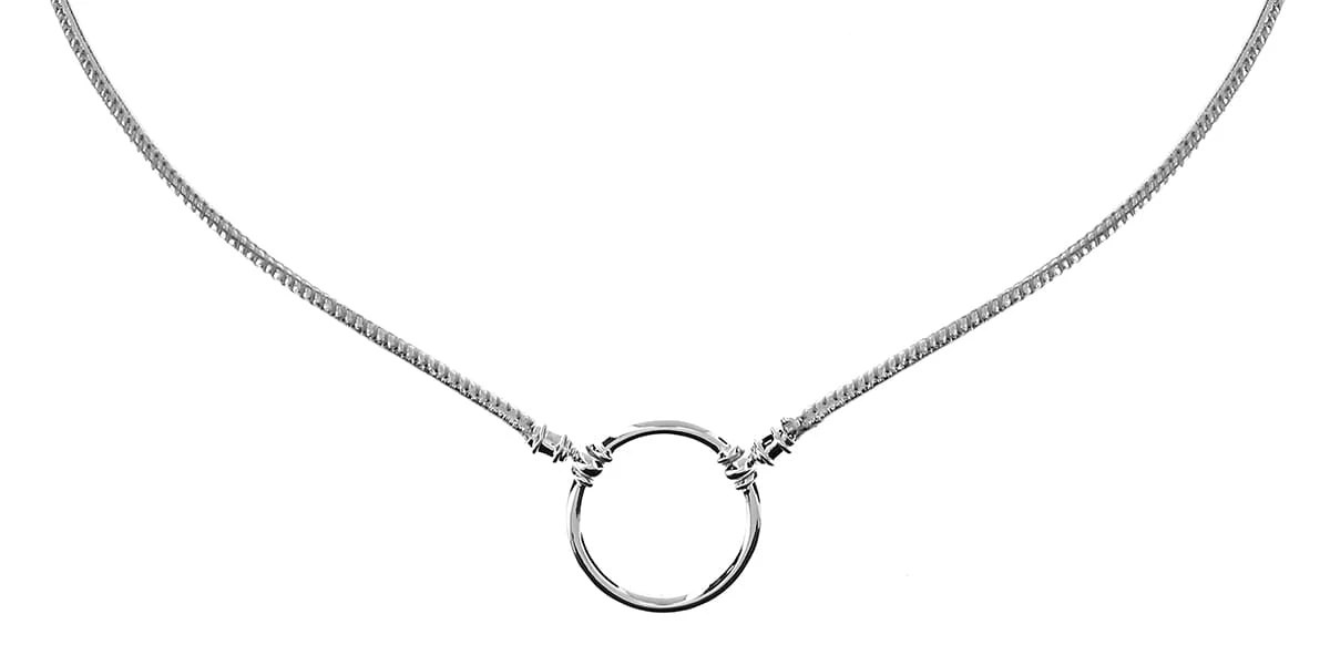 This round La Loop optical comes in a 25” silver stitched italian leather with silver loop frame.