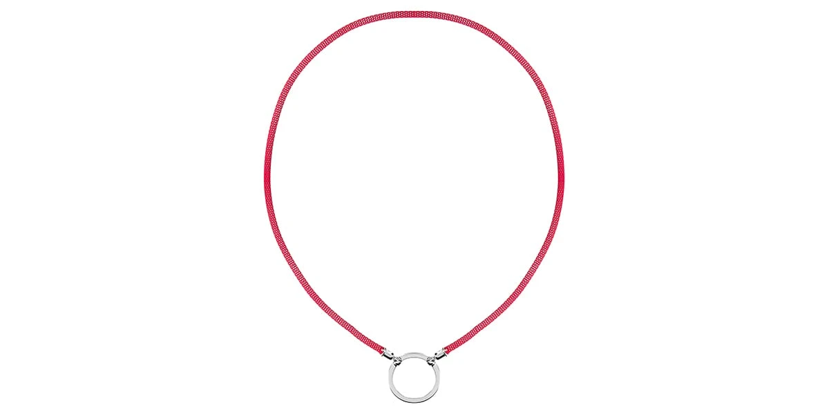 This round La Loop optical comes in a 25” fluo rose pink metal mesh with silver loop frame.