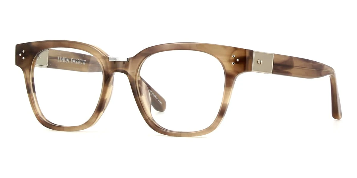 This square Linda Farrow optical comes in a shiny milky brown frame.